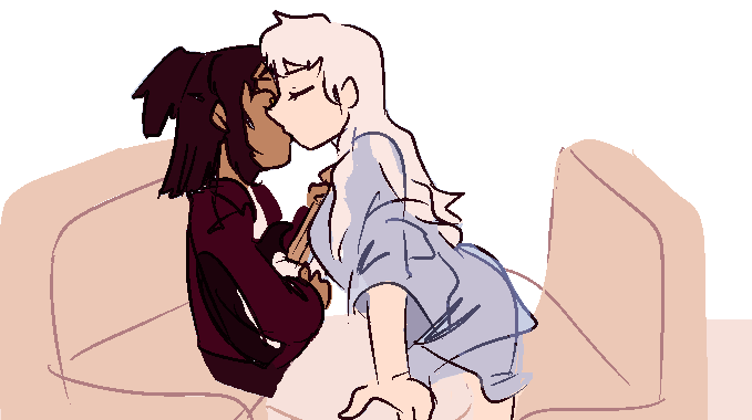 She sniffles. I set the guitar aside. I want to sit on her lap, so I do it. Arms draped over her shoulders. I kiss her.